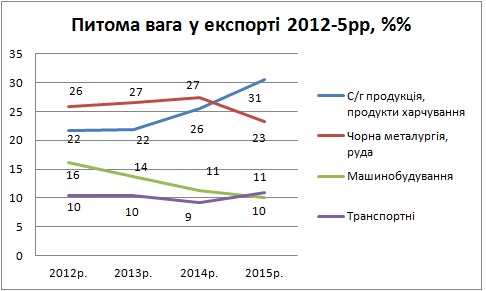 Збільшилась питома вага експорут послуг, серед яких на першій позиції транспортні послуги, в першу чергу - транзит прубопроводами нафти та газу з РФ у Європу. Транспортні послуги навіть дають більше валюти, ніж машинобудування. - 5.3млрд. проти 4.3млрд.$